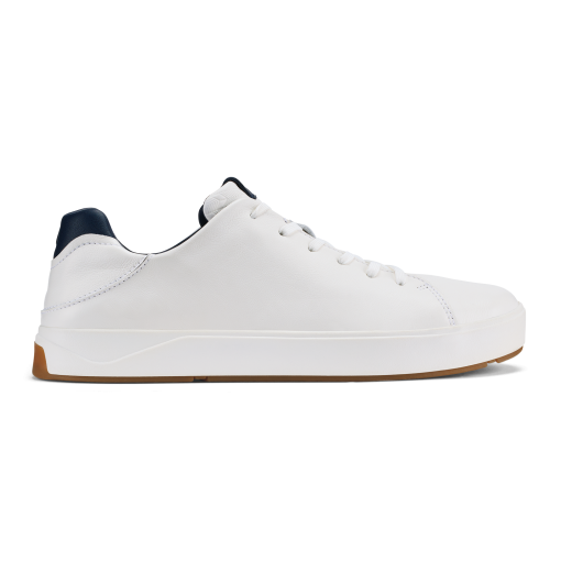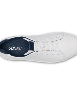 OluKai Men’s Waterproof Leather Sneakers | Bright White & Trench Blue | Men’s Shoes