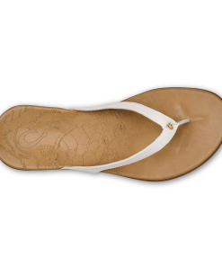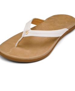 OluKai Women’s Leather Beach Sandals | Bright White & Golden Sand | Women’s Shoes
